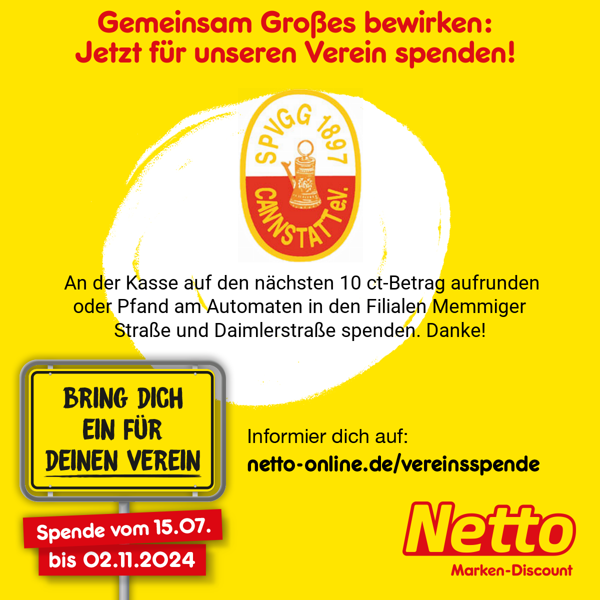 "Bring dich ein für deinen Verein" ist die regionale Spendeninitiative von Netto. Mit dieser Aktion fördert und unterstützt netto regionale gemeinnützige Vereine. In allen bundesweit 4.260 Netto-Filialen können die Kundinnen und Kunden mit ihren Kassen- und Pfandspenden vom 15.07. bis 02.11.2024 Vereinen aus der Region helfen, nachdem die Aktion zugunsten der Hochwasseropfer und Flutbetroffenen unterbrochen wurde.